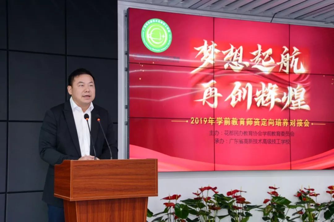 2019年12月28日下午,花都區民辦教育協會學前教育委員會和廣東省高新技術高級技工學校學前教育師資定向培養對接會于高新技校圖書館三樓報告廳舉行。