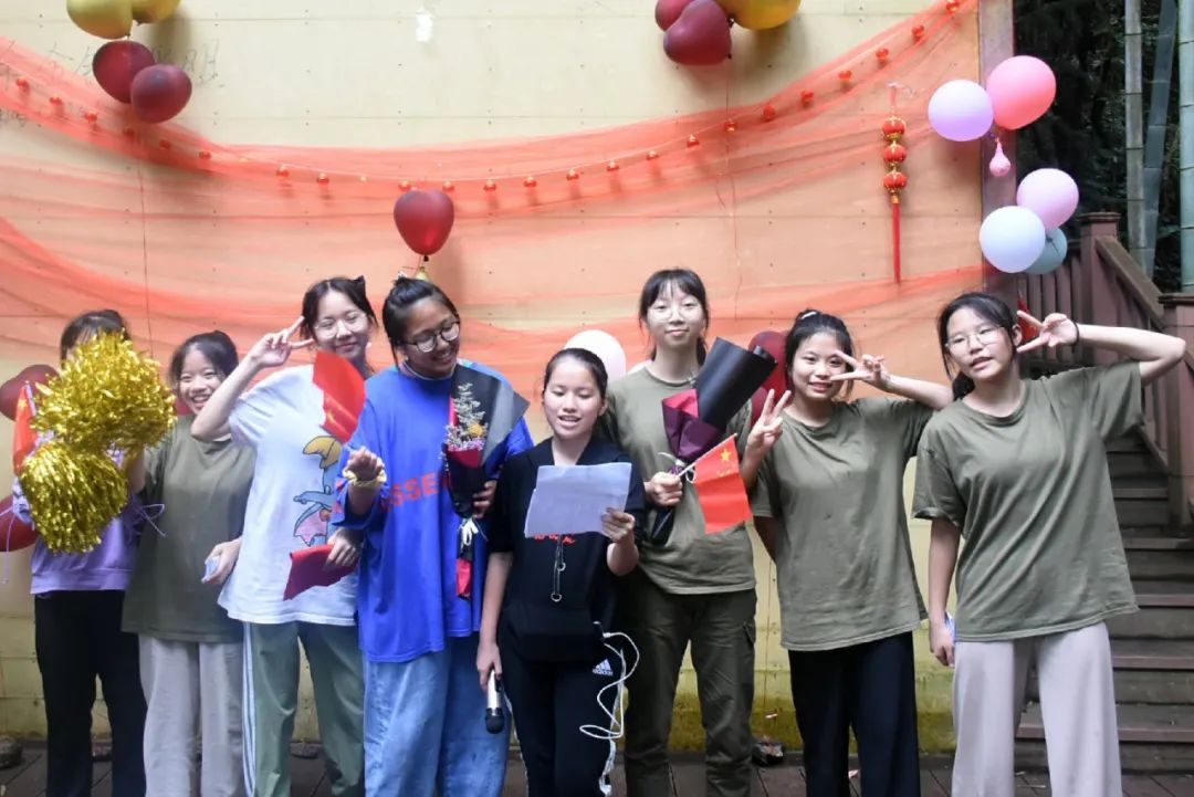 吃飽喝足便是節目表演環節,老師的《日不落》活躍氣氛,現場成為打歌舞臺,輕快酷炫的rap讓大家飽享耳福,搞笑有趣的廣西版《有何不可》讓大家捧腹大笑,熟悉的歌謠使得在底下的觀眾情不自禁地跟唱起來,小伙伴們組成一個個小團隊,在舞臺散發著獨具特色的光芒,歌聲夾著尖叫聲,打call聲響徹丫山,送花合影讓我們更親密了,每個人的臉上都洋溢著笑容,負責接送我們的劉老師最后也按捺不住了,唱起了動聽的經典歌曲《濤聲依舊》和《橋邊姑娘》。